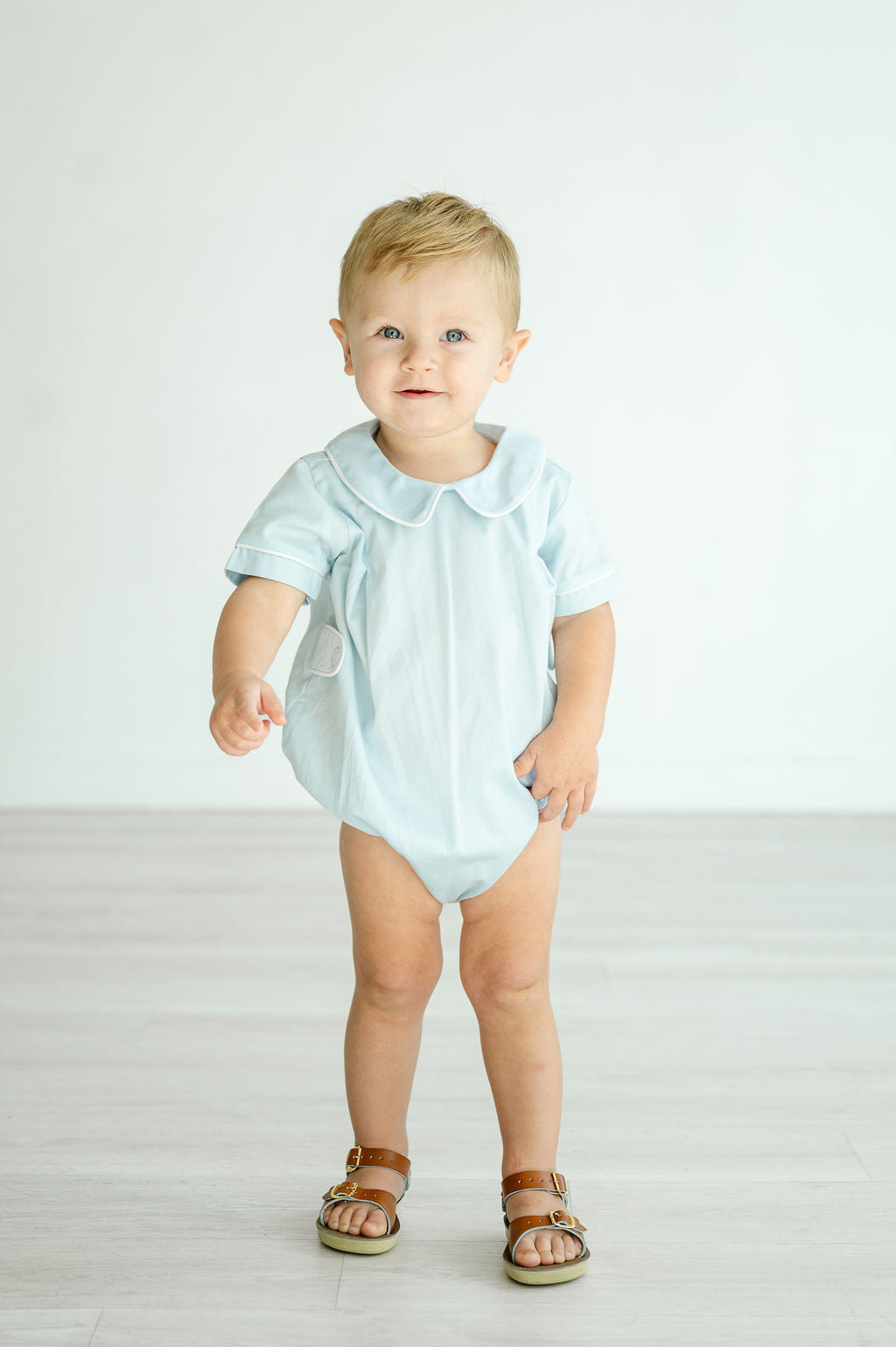 Make a grand entrance with our Blue Tab Bubble! This charming bubble features a classic button-down design with a touch of preppy flair thanks to the blue tab detail.
