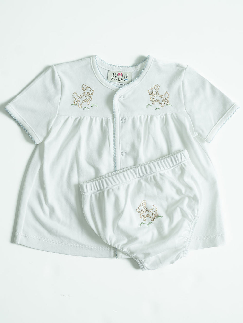 Wrap your little bundle of joy in cozy comfort with the Puppy Layette Set. Its charming design adds a sweet touch to cuddle time.
