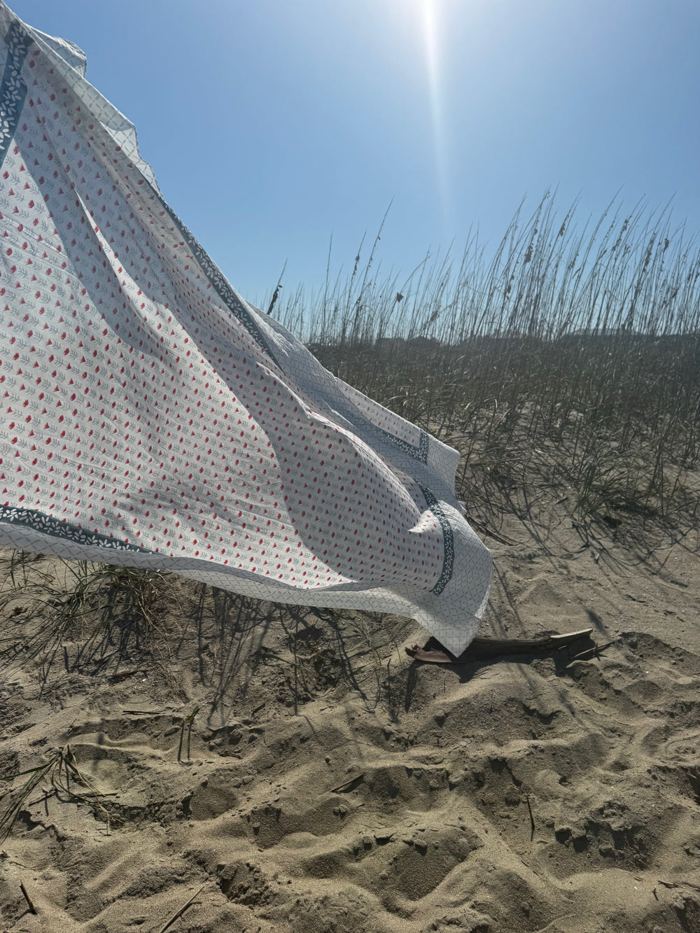 Our Pareo's are the perfect beach coverup, or can be used as a shoulder wrap on a chilly night out. They are printed on light weight cotton by Master Artisans in India in our Claire design. Shown in Poppy. Our Serene colorway can be found here.