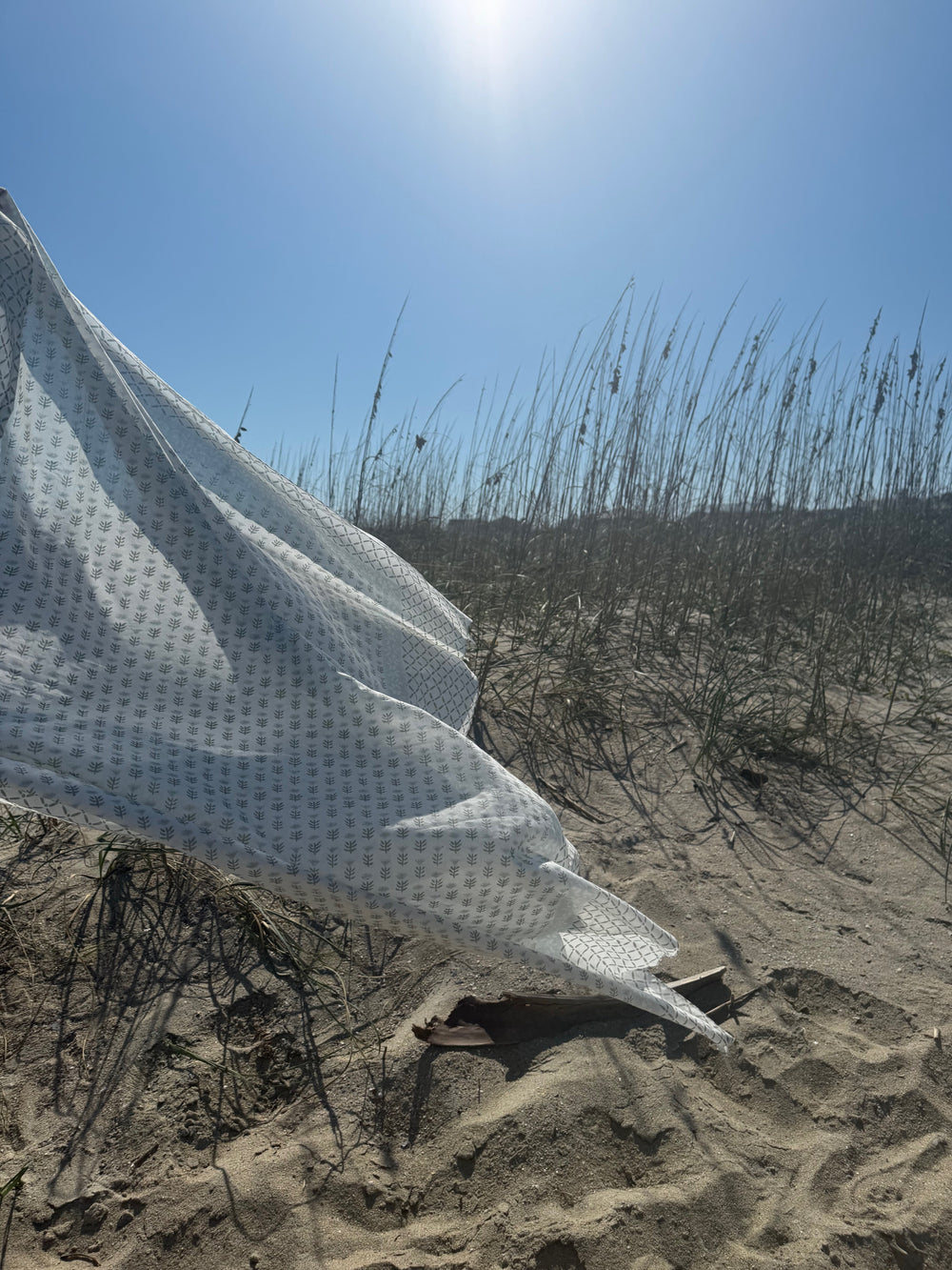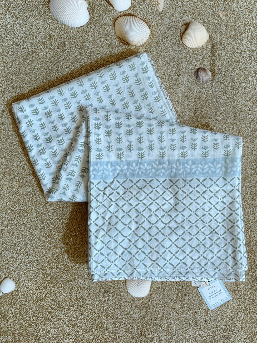 Our Pareo's are the perfect beach coverup, or can be used as a shoulder wrap on a chilly night out. They are printed on light weight cotton by Master Artisans in India in our Claire design. Shown in Serene. Our Poppy colorway can be found here.