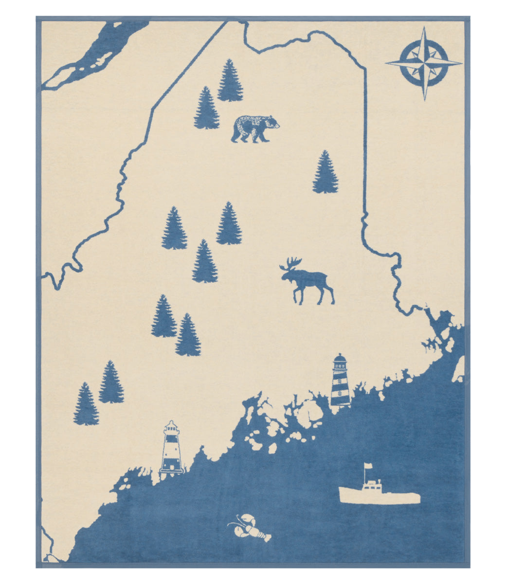 You sense it soon as you make your way to Vacationland: Maine’s laid-back way of life is an endless getaway. Capture that calm and comfort with a blanket that celebrates all our northern neighbor has to offer, cabin to coast.