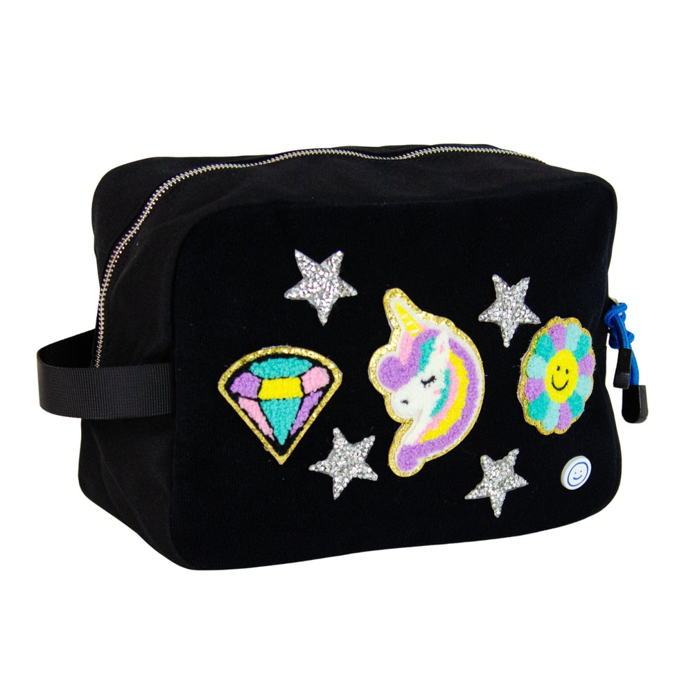 The perfect pouch to stash just about anything! Sleepover essentials, toy cars, goggles, sunscreen, bows, brushes - all of the fun stuff! Fit all of your necessities in this cute & stylish zipper pouch.