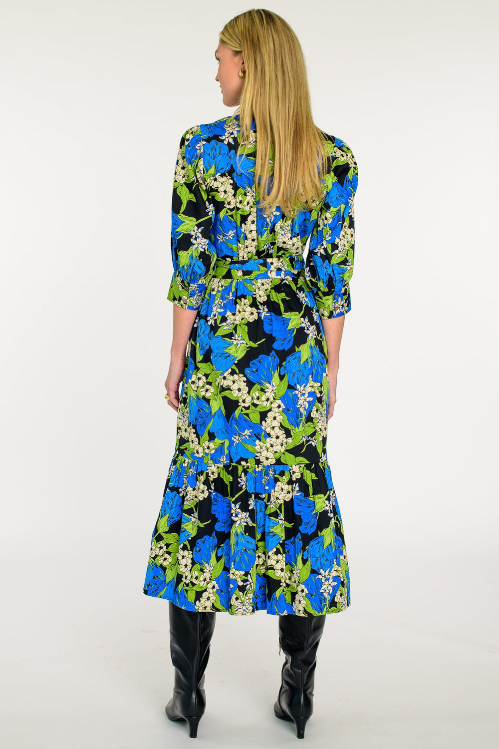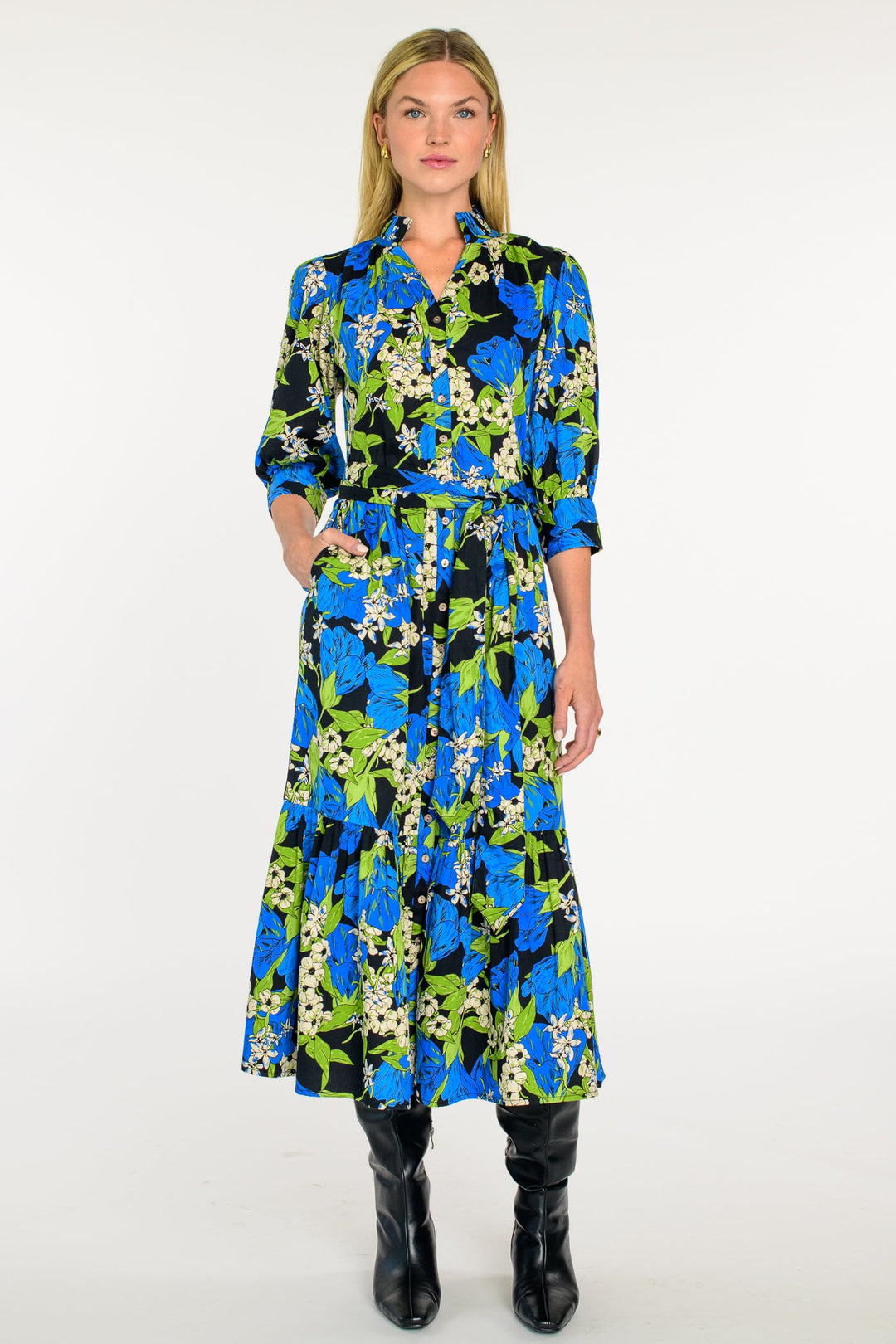 Say hello to Bonnie, a darling button-front midi dress boasting a feminine ruffle collar and tiered skirt. She has a back elastic inset waist for a figure flattering fit whether you choose to wear her plain or belted.