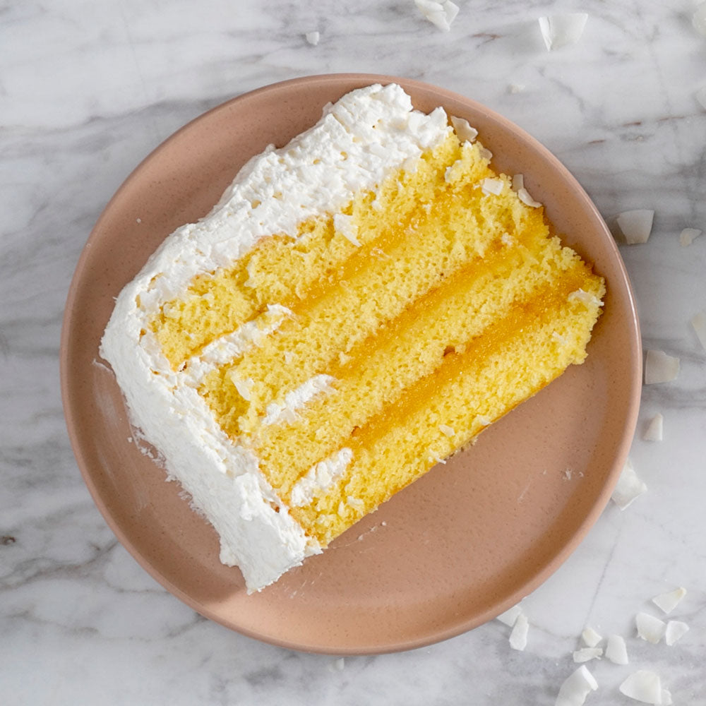 A citrus zip meets our Coconut Cloud Cake, for a bright, delightful pairing. Four layers of moist yellow cake are filled with house-made lemon curd, then iced in our fresh coconut icing.