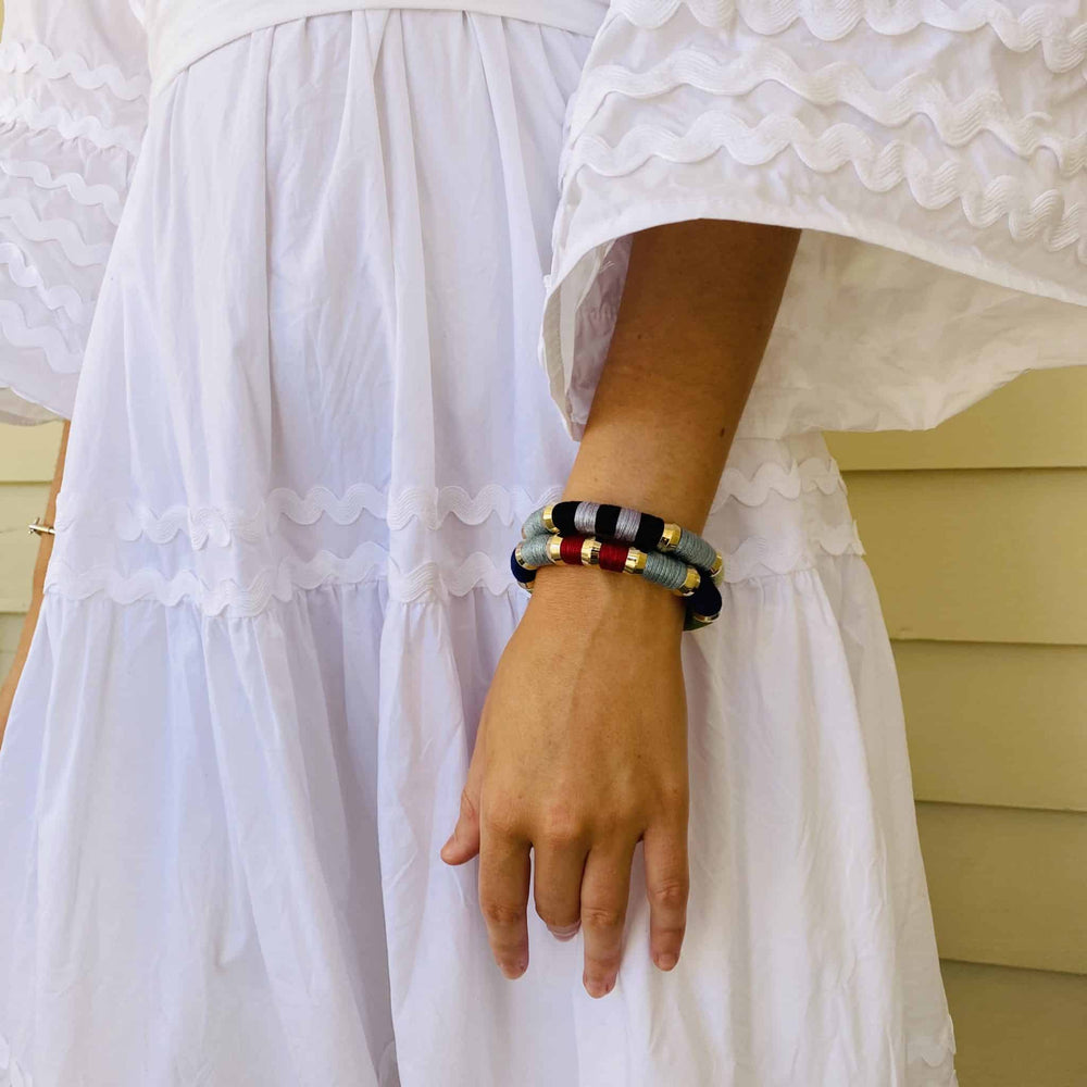 Pearl Cotton Thread, Gold Plated Brass Parts, Signature Magnetic Clasp.
