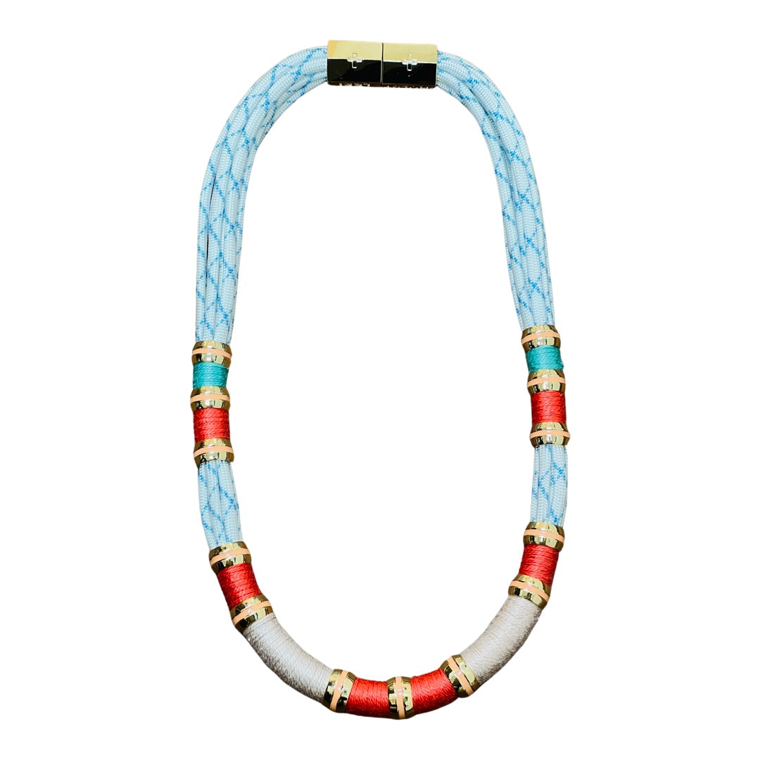 Paracord, Gold-Plated Brass Parts, Pearl Cotton Thread, Signature Magnetic Clasp.