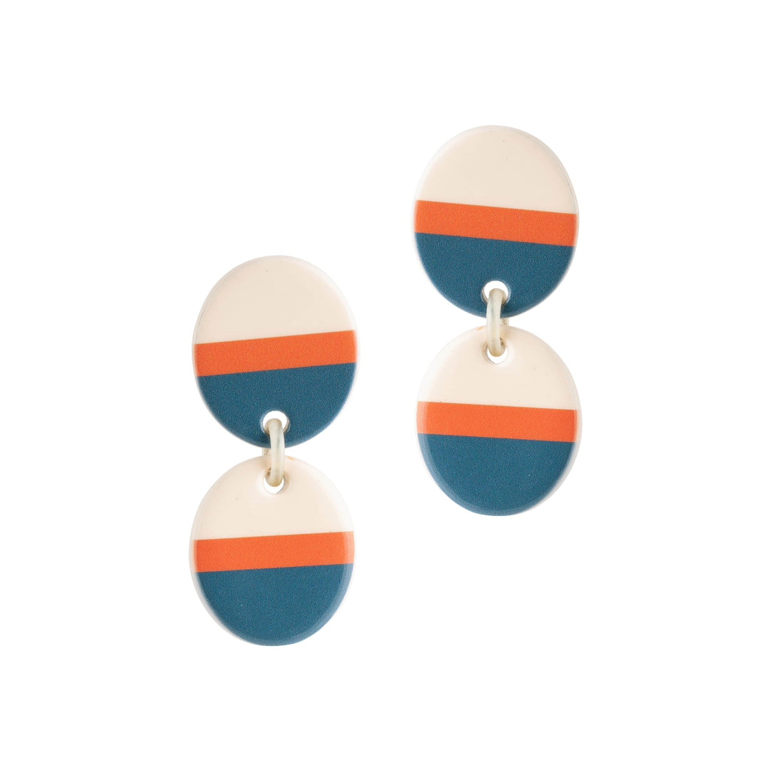 Brighten your look with the Colorful Gloria Earrings. These double circle earrings feature a vibrant colorblock design with ivory, orange, and teal, adding a playful and modern touch to any outfit.