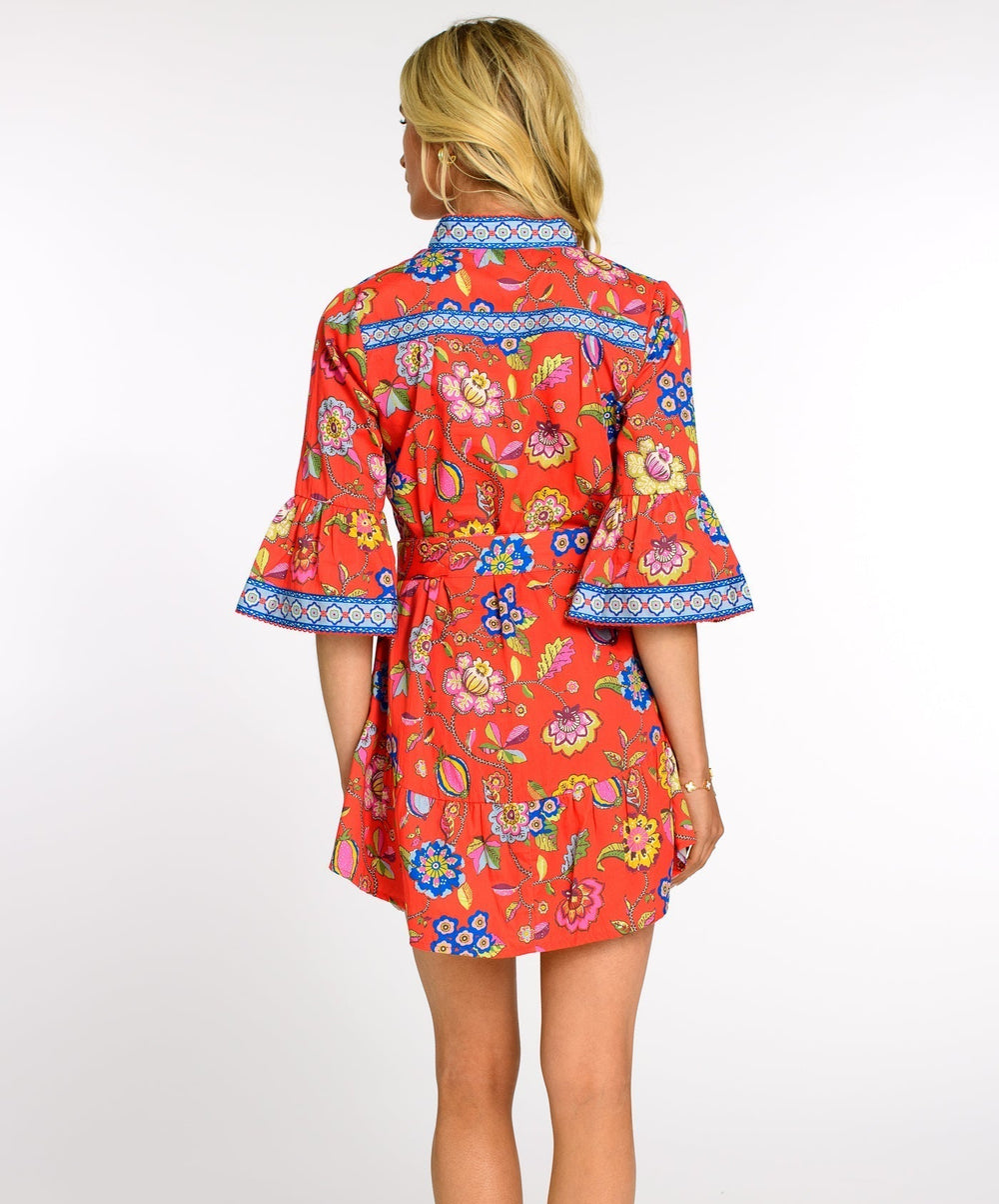New this season, the Frances dress features a flattering mandarin collar, flirty flutter sleeves, and a ruffled skirt hem. Wear her belted or loose for an easy, go anywhere look.