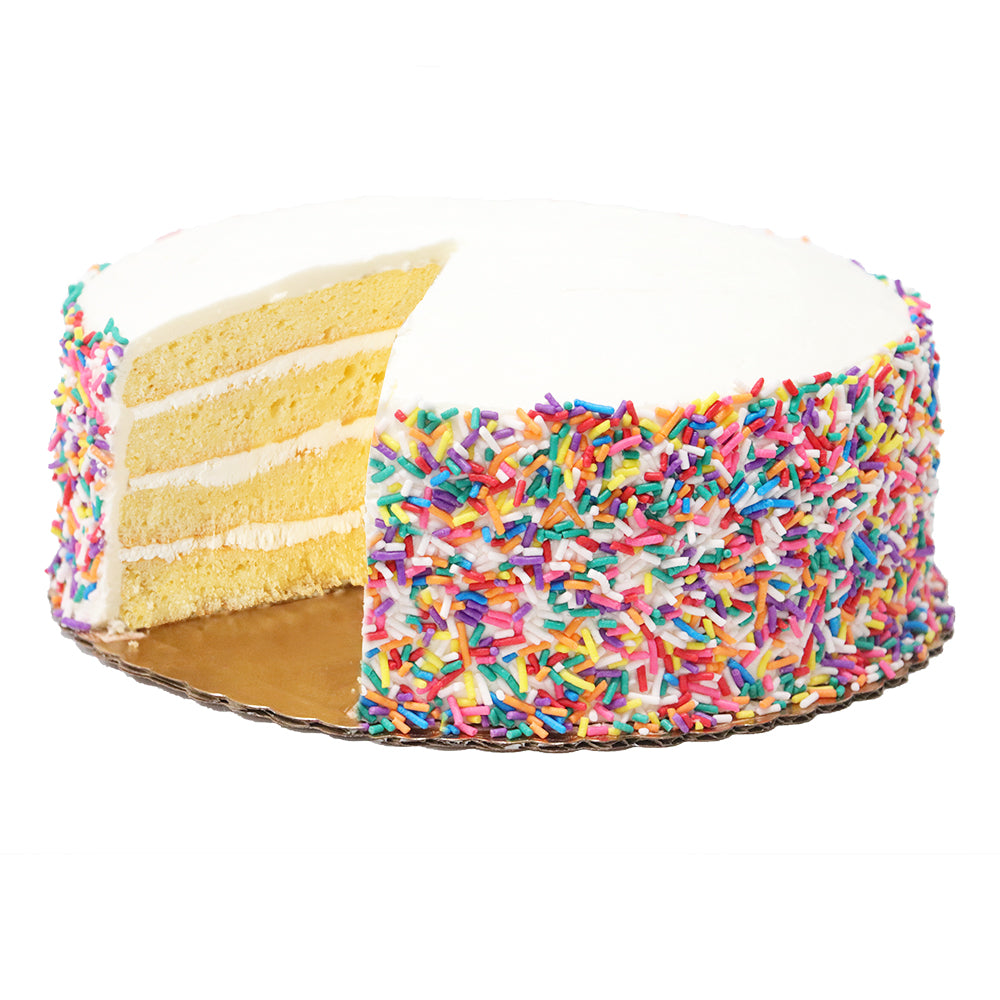 Cue the confetti, it’s your favorite Vanilla Cake, iced in smooth vanilla buttercream and sprinkled with joy! Each bite captures the classic birthday essence, with rich vanilla flavor that brings back the warmth and joy of childhood parties.