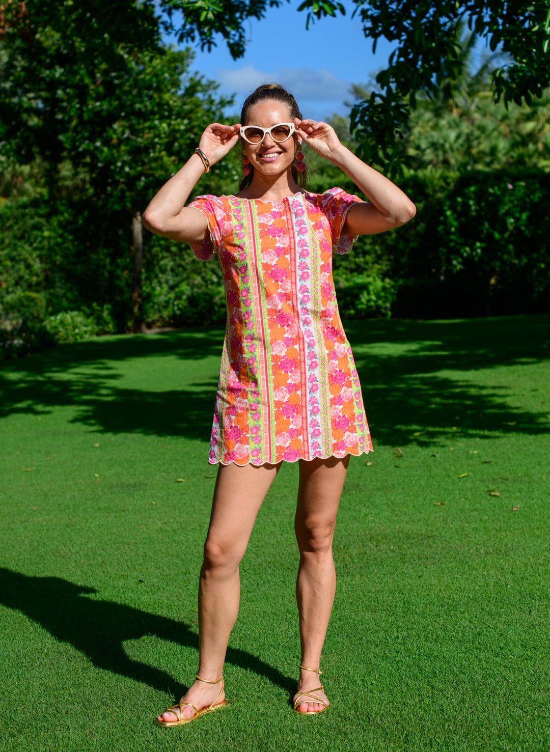 Louisa is a consistent fan favorite, and this season's version is no exception. She boasts the same round neckline and shift silhouette that you know and love. This season, Louisa is back in our Rosebud Ribbon Stripe print with cap sleeves and white scallop embroidery trim.