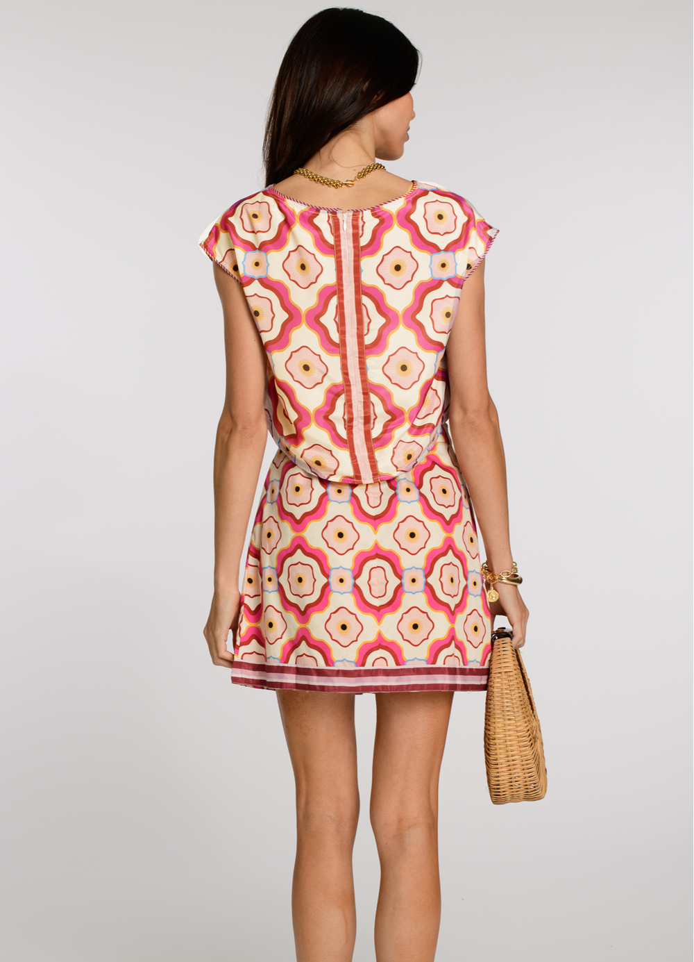 The button front Maria mini skirt gives off retro vibes with her oversized covered buttons, striped trim, and slight A-line silhouette. We especially love her in this season's Pink Trellis print. Take Maria from 9-5 to 5-9 with a solid or matching top.
