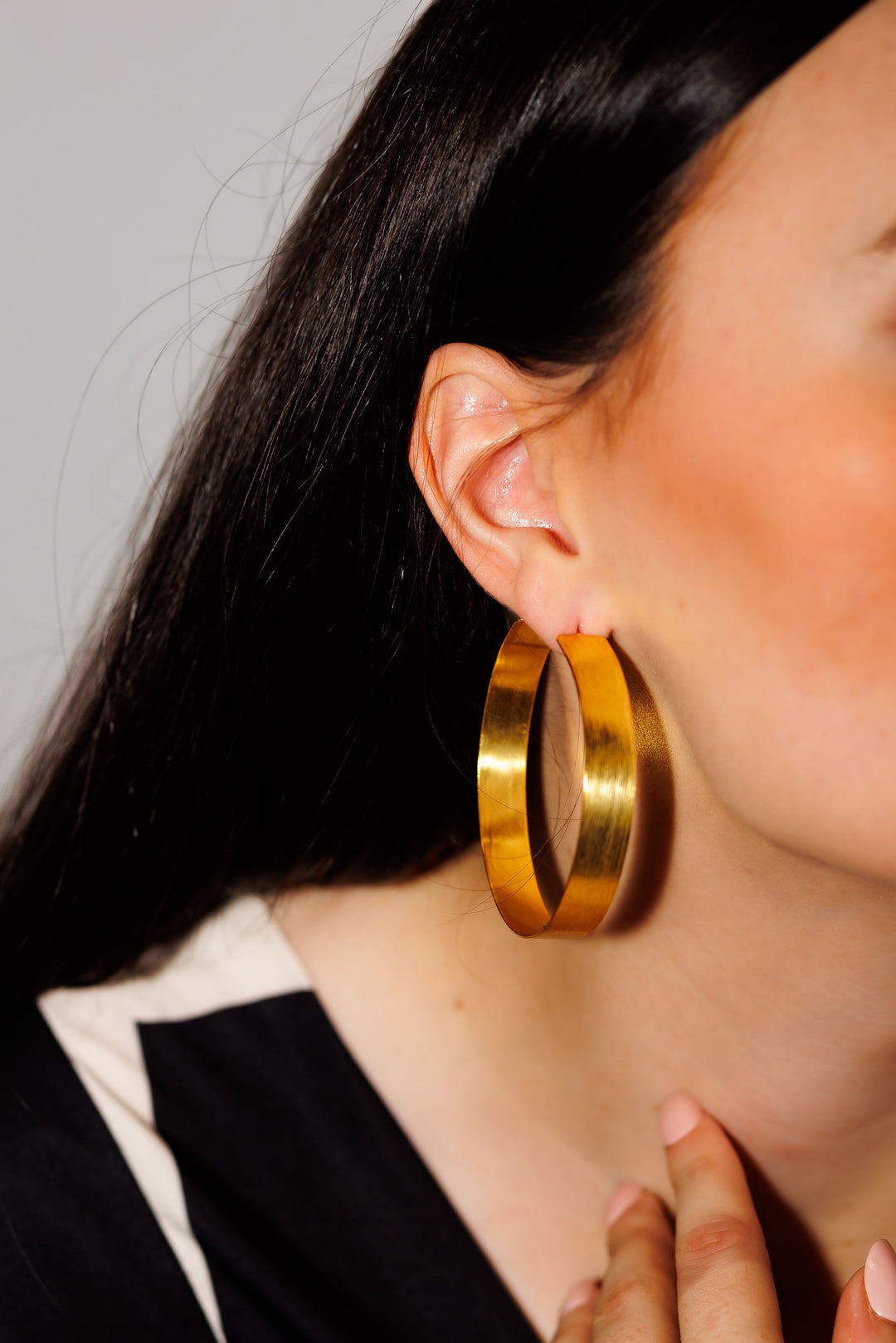 This triple gold brushed hoop is the earring you never knew you needed! We can’t seem to keep the Lennox hoop in stock. You’ll see why once you get your own pair. Priding herself on her versatility and lightweight feel, you’ll picking up this pair time after time. You can never go wrong with a classic gold hoop, but you’ll see why this one tops the charts!