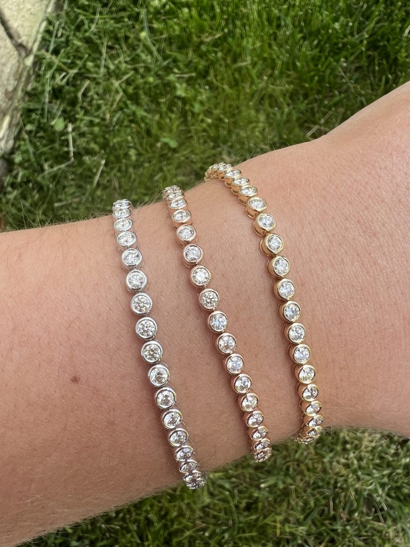 Add a classic to your jewelry collection with our Bezel Diamond Tennis Bracelet handcrafted with 14K gold. This necklace comes in three total diamond carat sizes and three gold color for your dream bracelet.