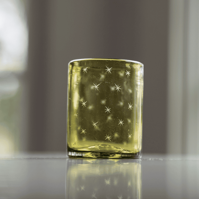 We're excited to share our best-selling etched rocks glass in new colors. This glass is ideal for cocktails, mocktails, and iced coffee. Made with our hand-blown, recycled glass, we are thrilled to offer this glass in a new citron color.