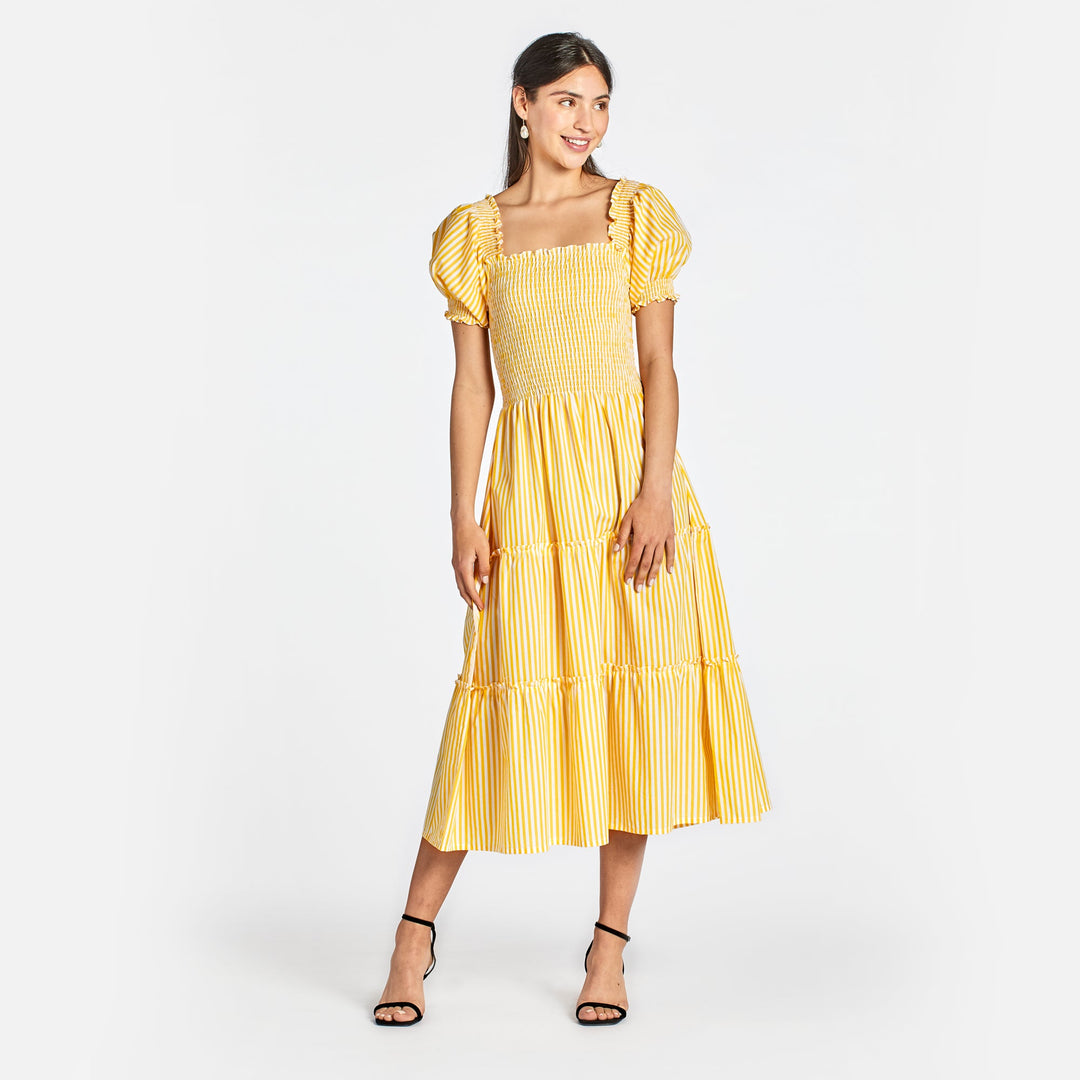 A dreamy and oh-so-comfortable style, The Meg is perfect for fabulous warm-weather getaways and fun local outings. She shifts seamlessly from day to night just by pulling the sleeves off-the-shoulder. Slip on the stretch, smocked bodice (no zip required) to feel instantly put together and twirl away in the tiered, flowing skirt.