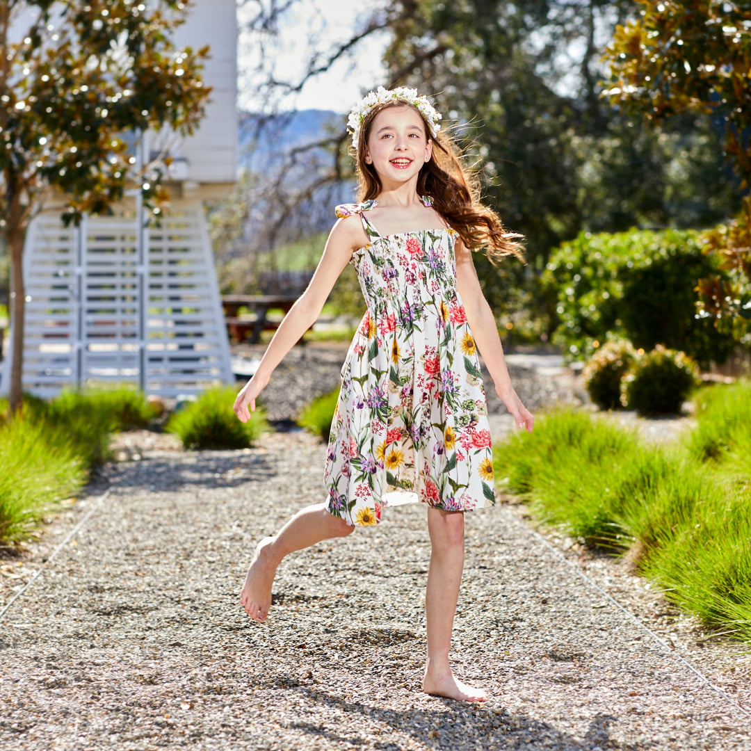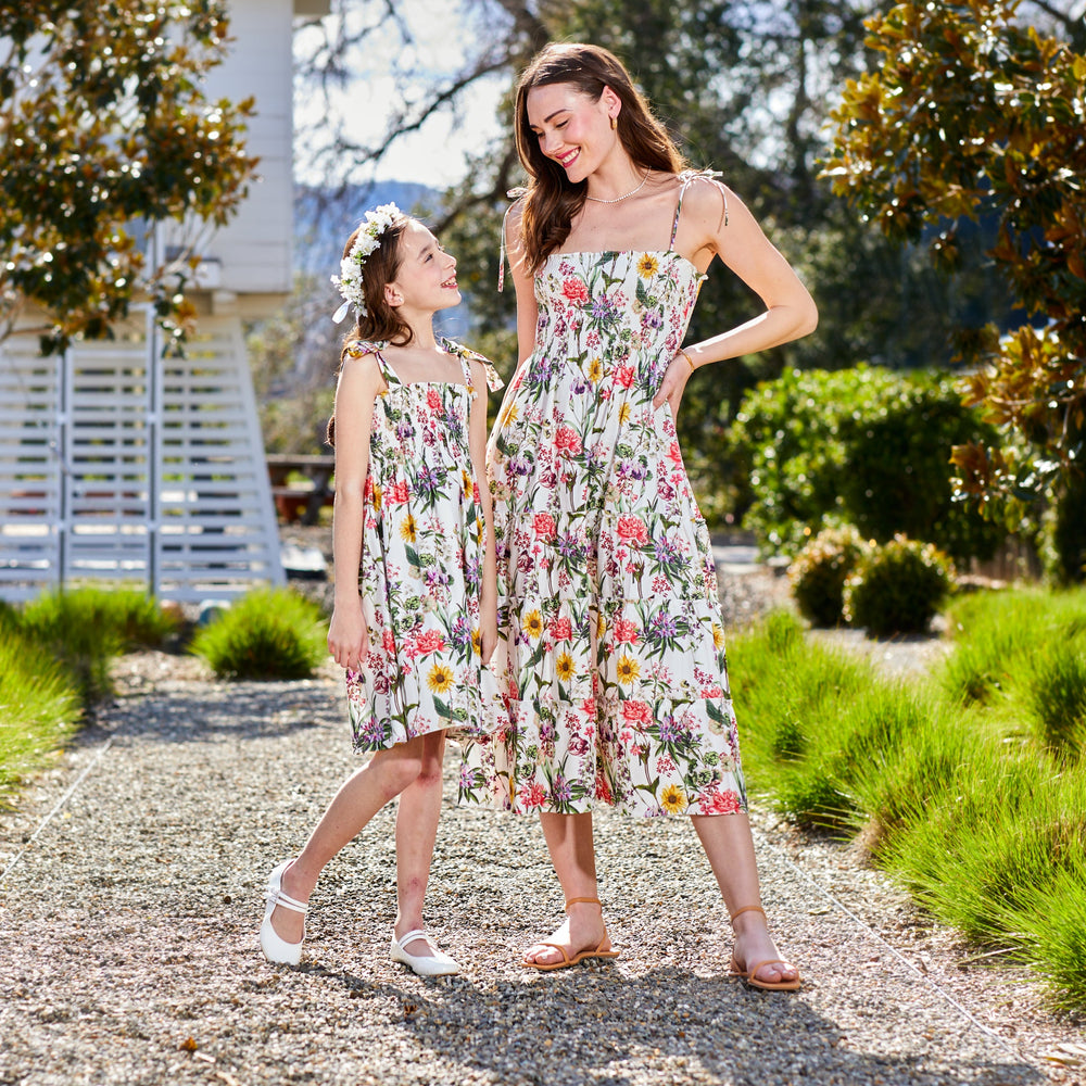 This sleeveless sundress dress in a fresh floral print has adjustable straps for a custom fit. See the Beth in White Floral for the perfect matching moment!