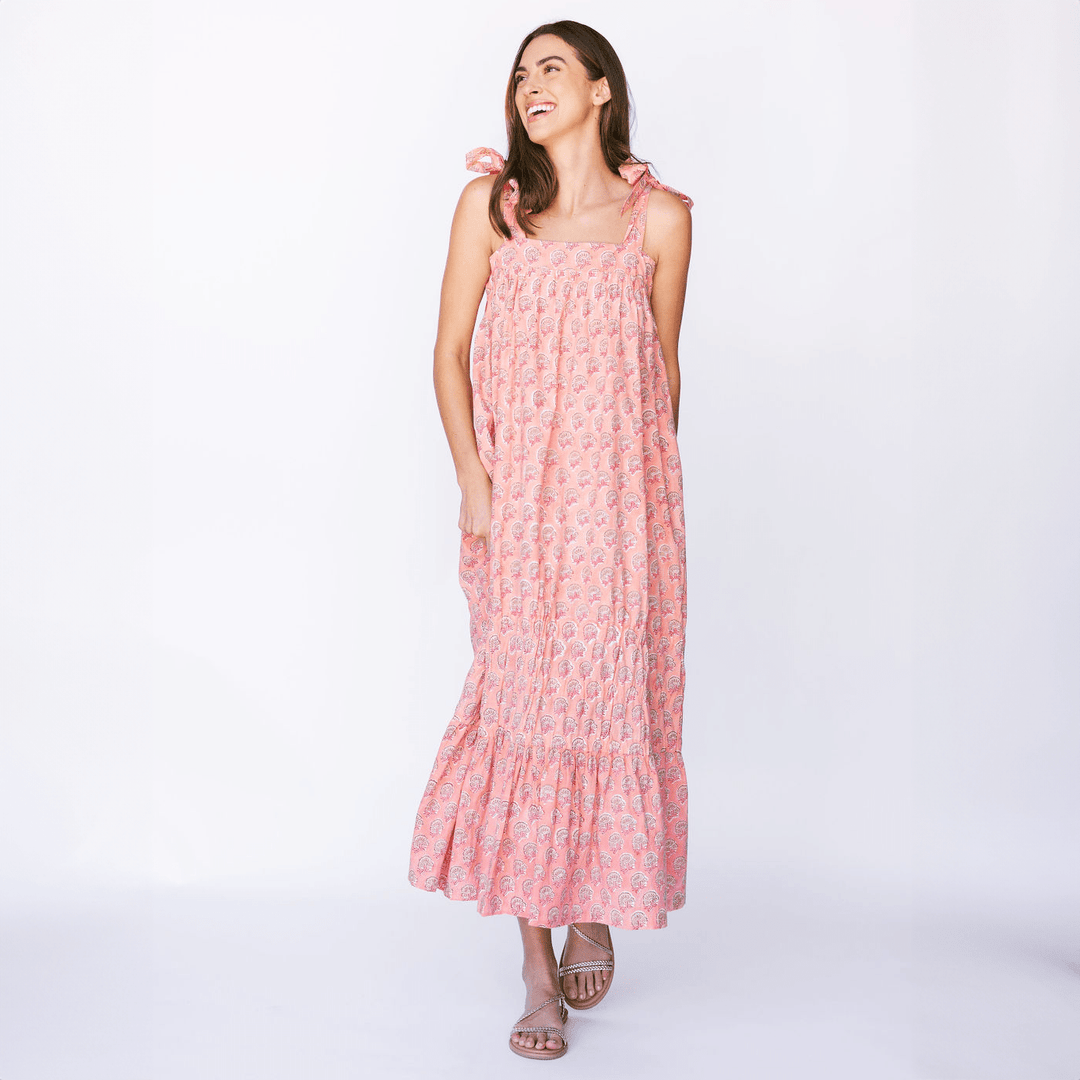 This dress is going to be your next go-to sundress for the summer. It's great for dinner out or a day running errands. The bottom hem has beautiful gathers to give it that "je ne sais quoi" and we're here for it. Model is 5'10; dress falls to ankles on most.