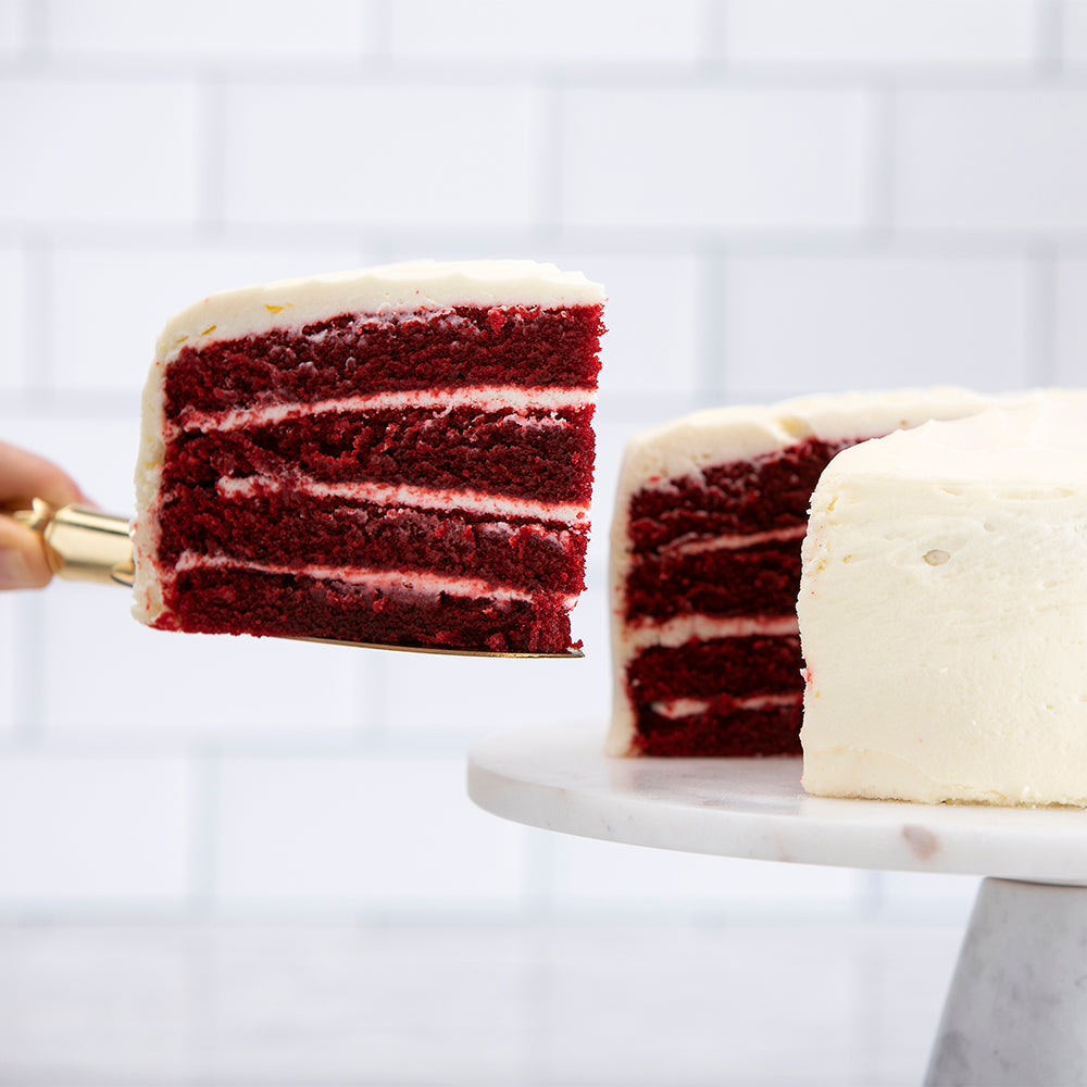 Our version of this distinctive traditional Southern classic is made with four moist red velvet layers filled and iced with our rich cream cheese icing. Indescribably delicious!