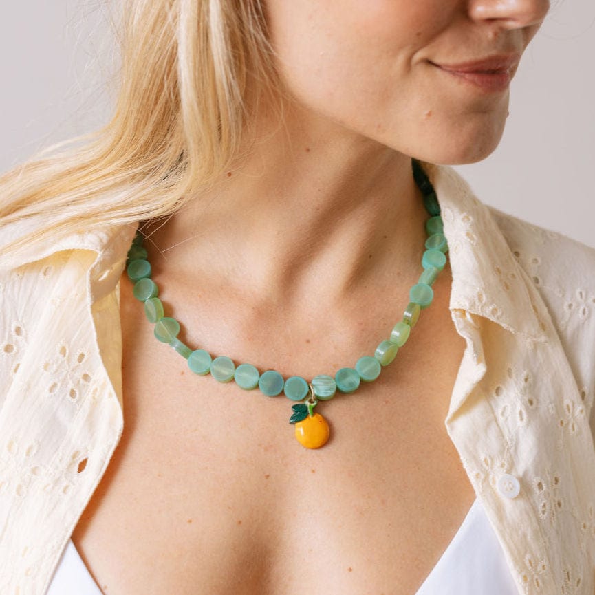 Add a pop of fruity fun to your accessories with our Orange Charm, featuring a shiny finish and hand-painted details. This playful charm is perfect for adding a touch of vibrant color and whimsy to your jewelry collection.