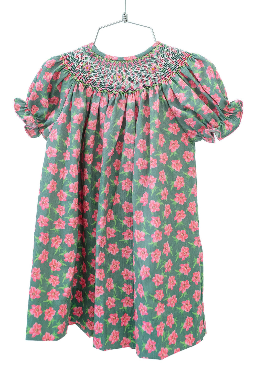 The Smocked Azalea Dress is a timeless piece, perfect for spring. With a smocked bodice and and deep pink azaleas, this dress combines classic design with heirloom-quality craftsmanship. Made from a soft blend of 65% polyester and 35% cotton, it offers both comfort and style for your little one.