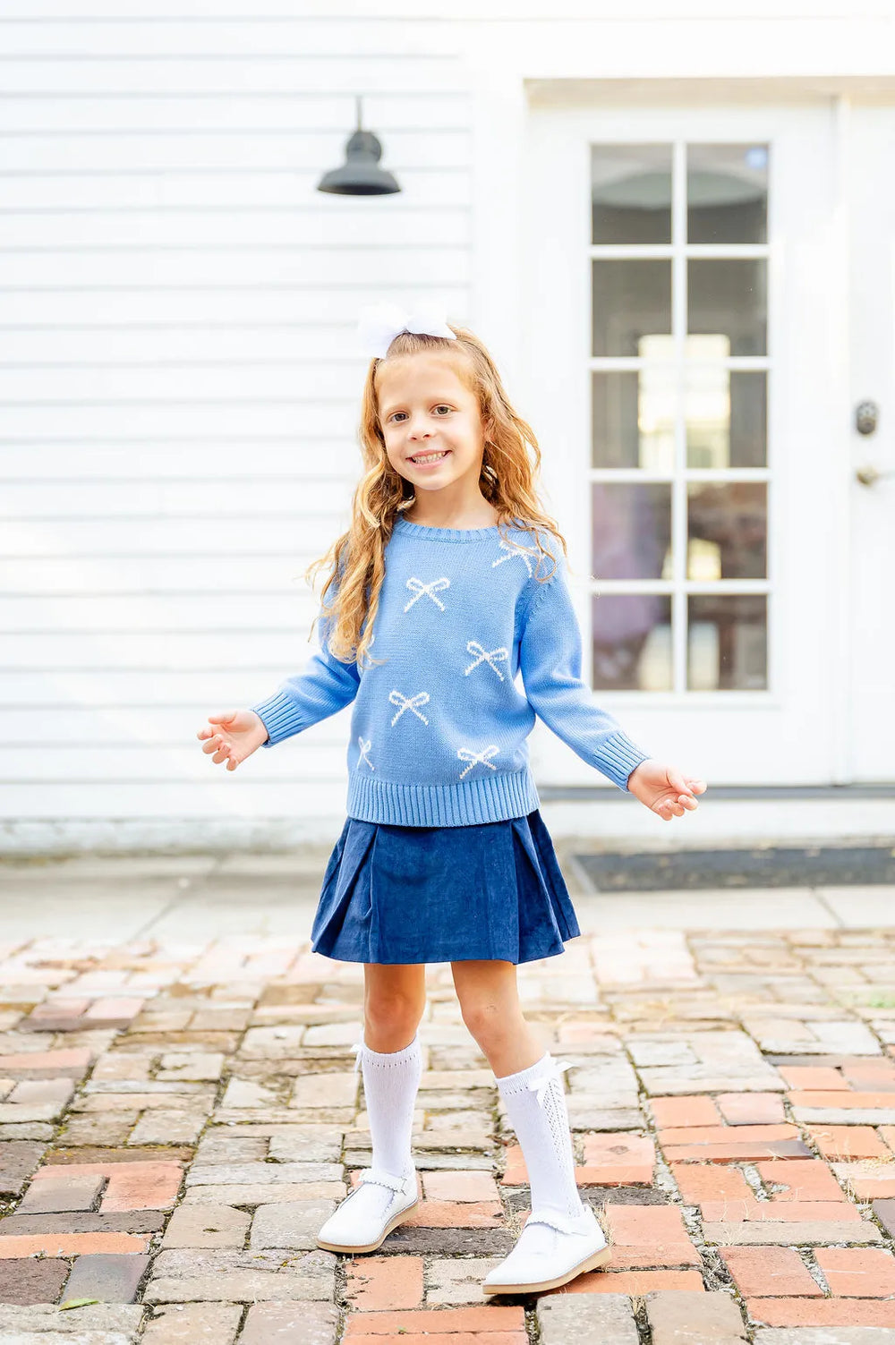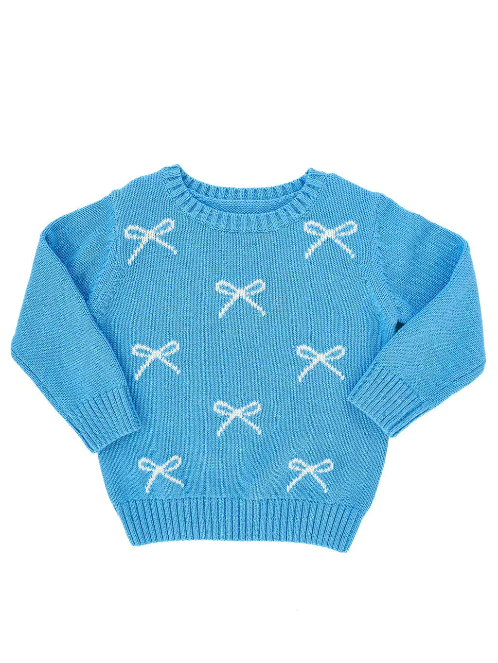 Put a bow on it! This darling Bow Sweater will be sure to elevate your little girl's closet! Made of super soft yarn and a classic white and blue color scheme.