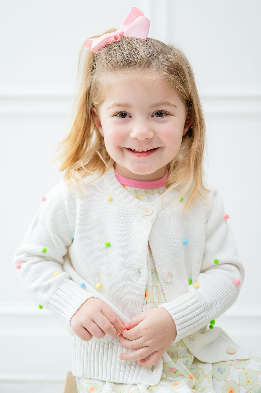 Make every moment special with our Colorful Pastel Pom Pom Cardigan for toddler girls and kids! This charming cardigan features pastel pom pom details that add a playful touch to any outfit. Its soft, knit cotton design ensures all-day comfort while keeping your little one stylish and cozy. Perfect for celebrating a birthday or adding a cheerful pop to her everyday wardrobe, this cardigan is both timeless and fun.