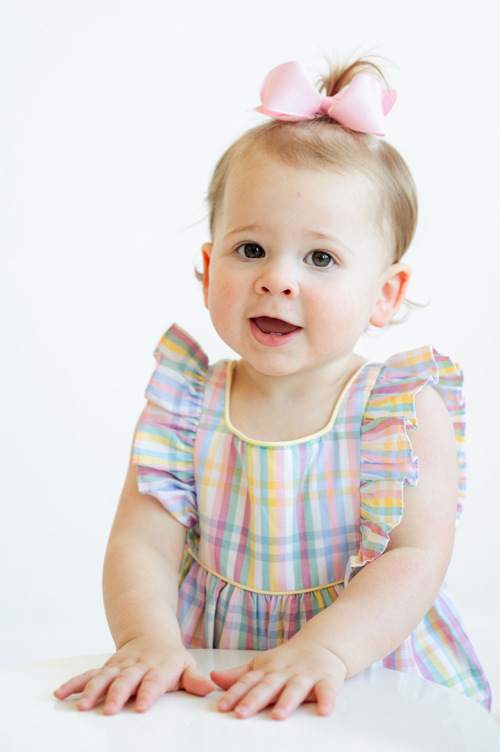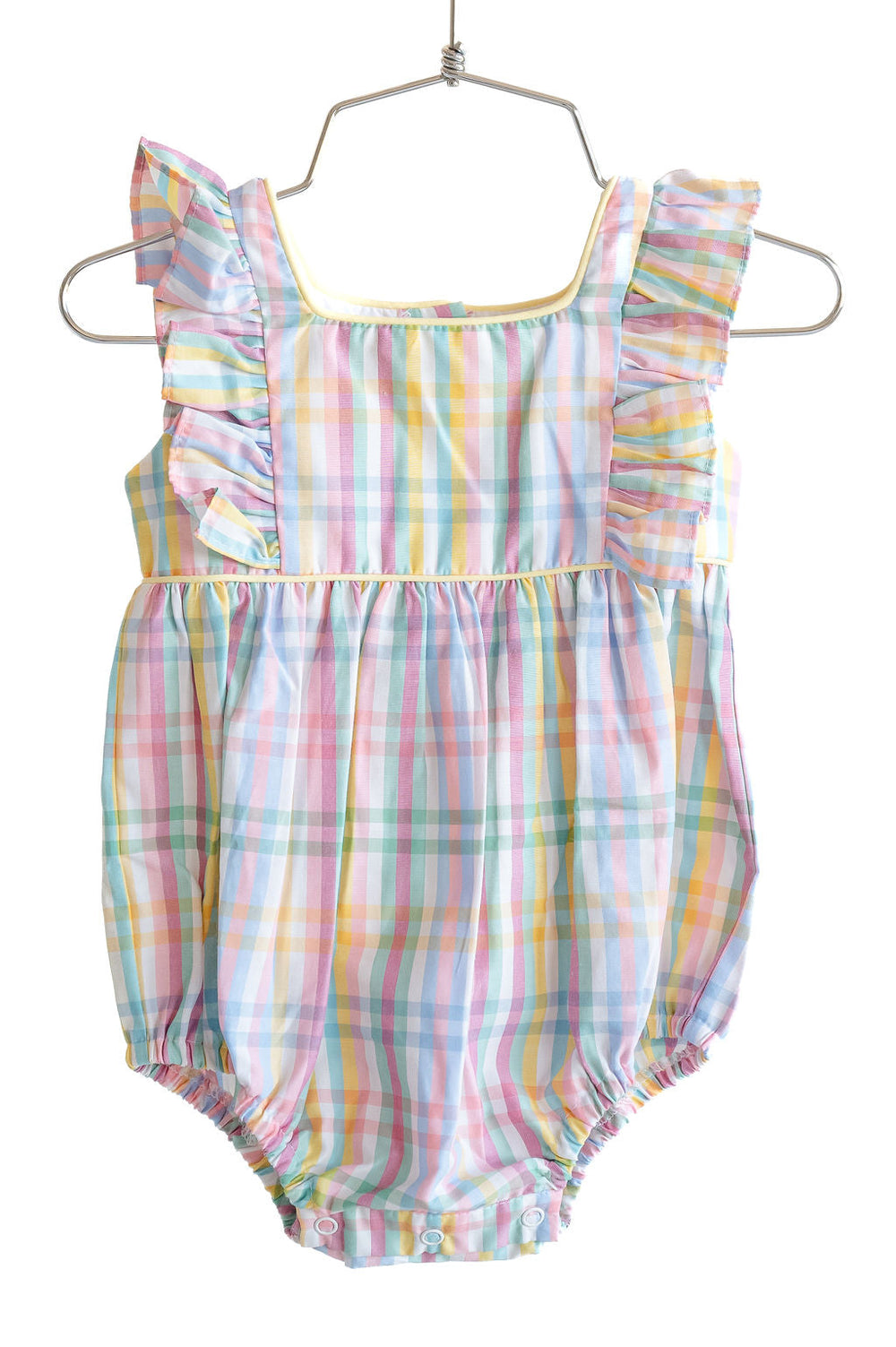 The Colorful Plaid Bubble with ruffle details is the perfect springtime piece for your little girl. Made from 100% cotton, it’s soft, breathable, and comfortable for all-day wear. The cheerful plaid pattern in vibrant spring colors, paired with sweet ruffle details, gives this bubble a playful yet classic look. Available in sizes 3M to 2T, it’s an ideal choice for baby and toddler girls to enjoy the season in style.