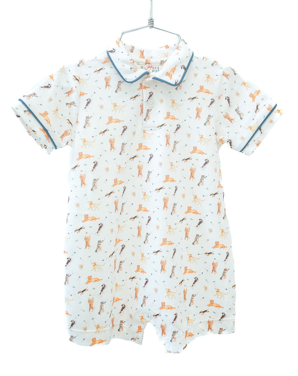 The Pima Puppies Romper for boys is a charming and comfortable option for your little one. Featuring an all-over puppy print on a white background, this romper includes blue piping and a classic collar. Made from 100% pima cotton, it’s incredibly soft and breathable, making it perfect for spring days and playtime. Available in sizes 6M to 4T, it’s designed for toddler boys who need both style and comfort. The romper runs true to size but may shrink if dried in the dryer.