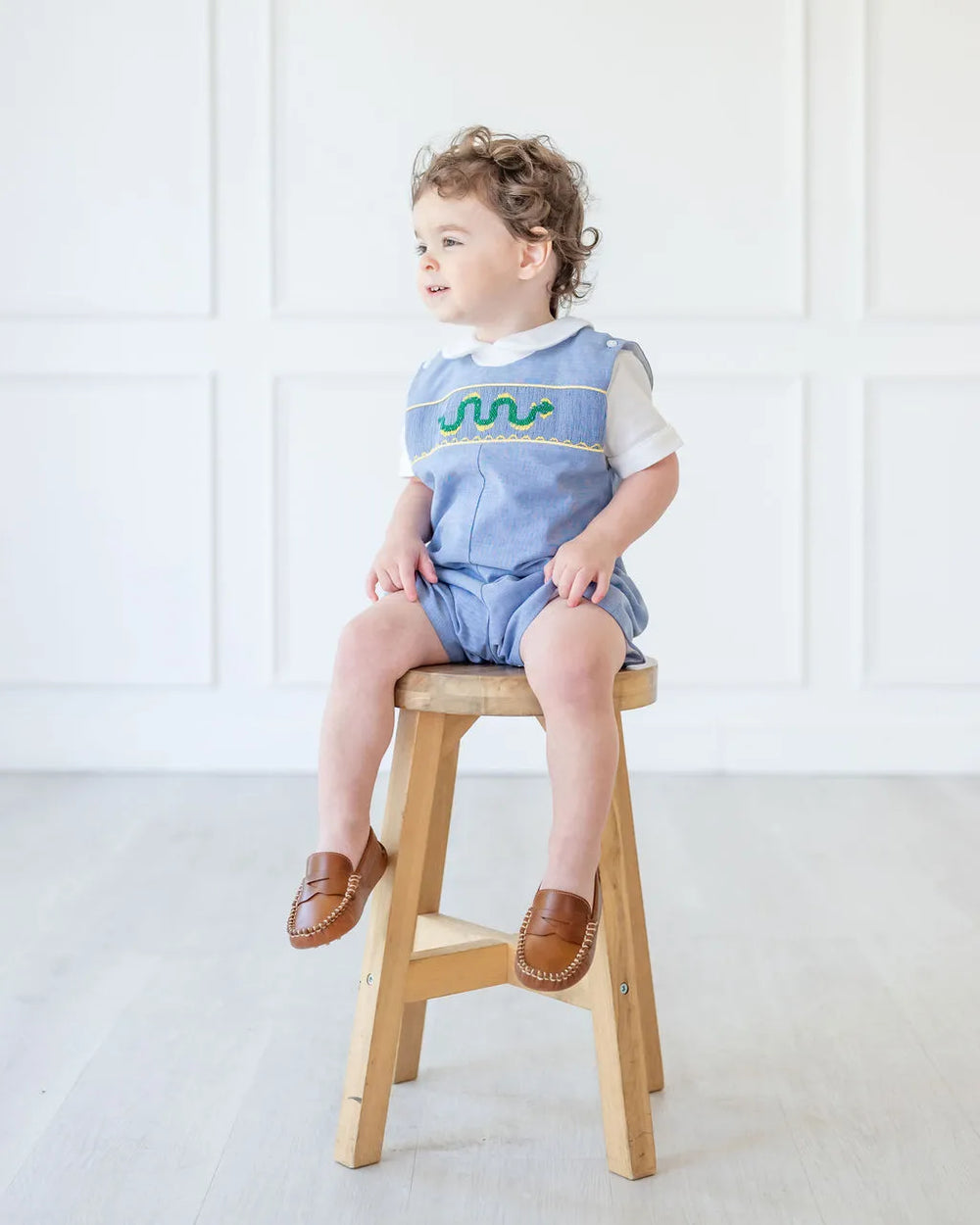 Every little boy's closet needs a super cute Smocked Snake Jonjon! He will love the youthful hand smocked snake and you will love the classic, comfortable style. Wear on your next zoo visit or outdoor adventure!