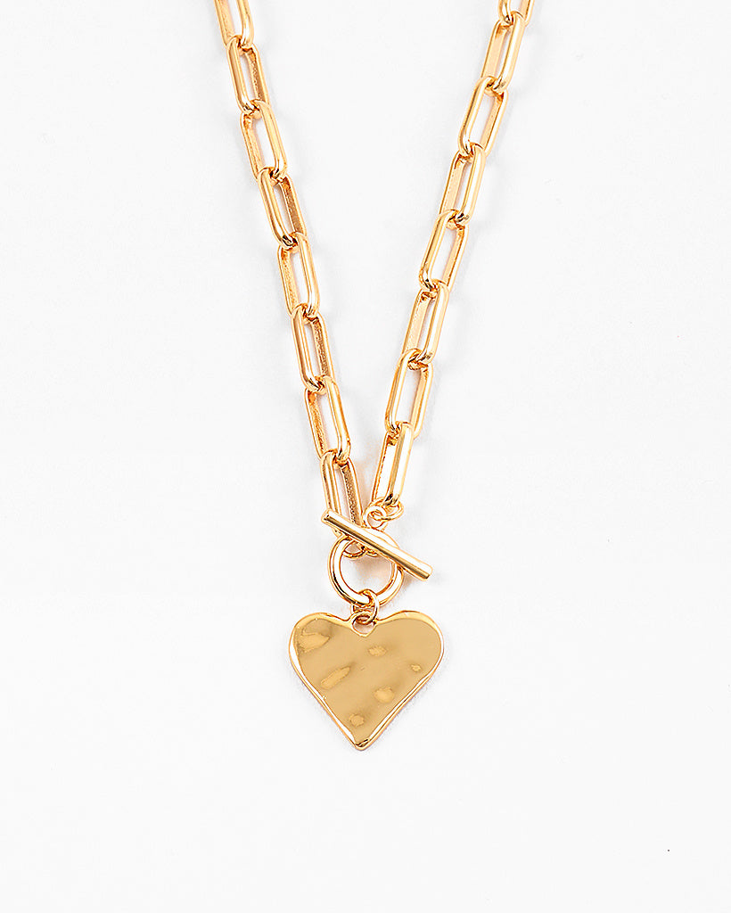 We added our Hammered Heart Toggle Necklace to our permanent collection / made with a hammered heart and a thick rectangle chain, this one fastens with a toggle in the front and is a staple! We love this cool & polished piece. Equal parts chic & effortless. Choose self love and add good vibes to your necklace collection.