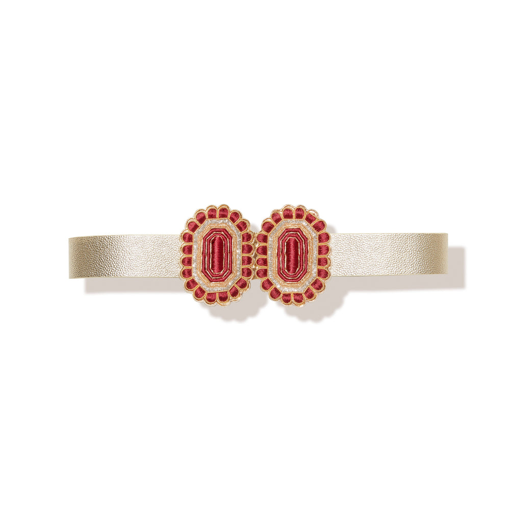 If you are a fan of our “Mint to Be” jewel buckle, then you will love our new Birthstone Collection. The silken threads reflect the light in a rich and illuminating way - set off by Czech crystals and gold-plated thread. Add it to an understated dress to make a bolder statement, or pair with denim and a crisp top to add some personality to your basic uniform.