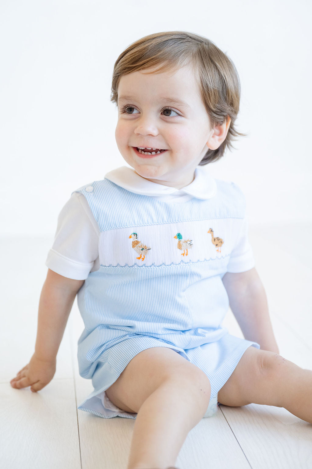 - Hand-smocked ducks for a charming design