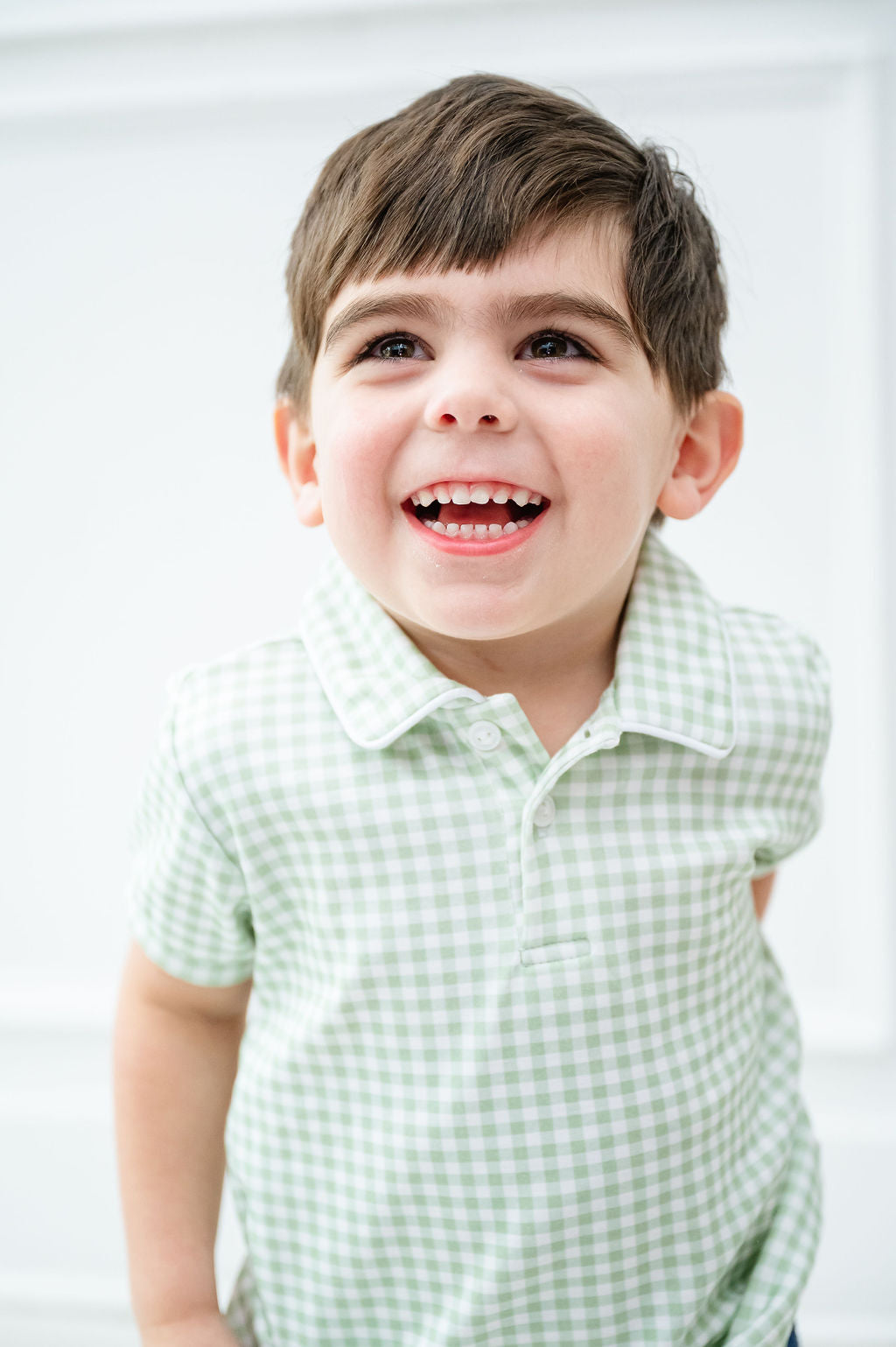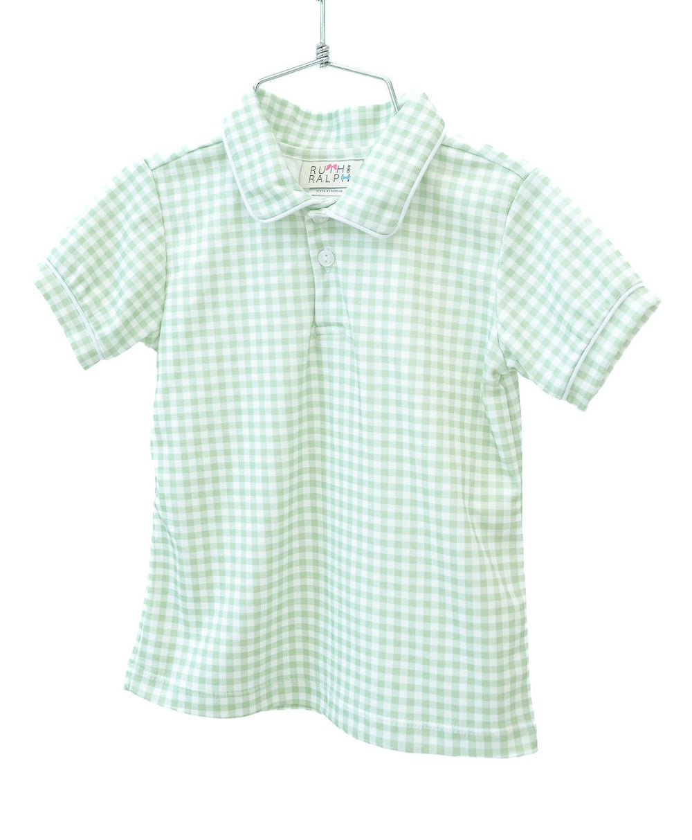 The Green Gingham Polo is made from soft 100% pima cotton, perfect for spring and special events. It’s ideal for casual outings and can be personalized with a monogram. Available in sizes 12M to 6, it runs true to size but may shrink if dried. Complete the look with classic pants.