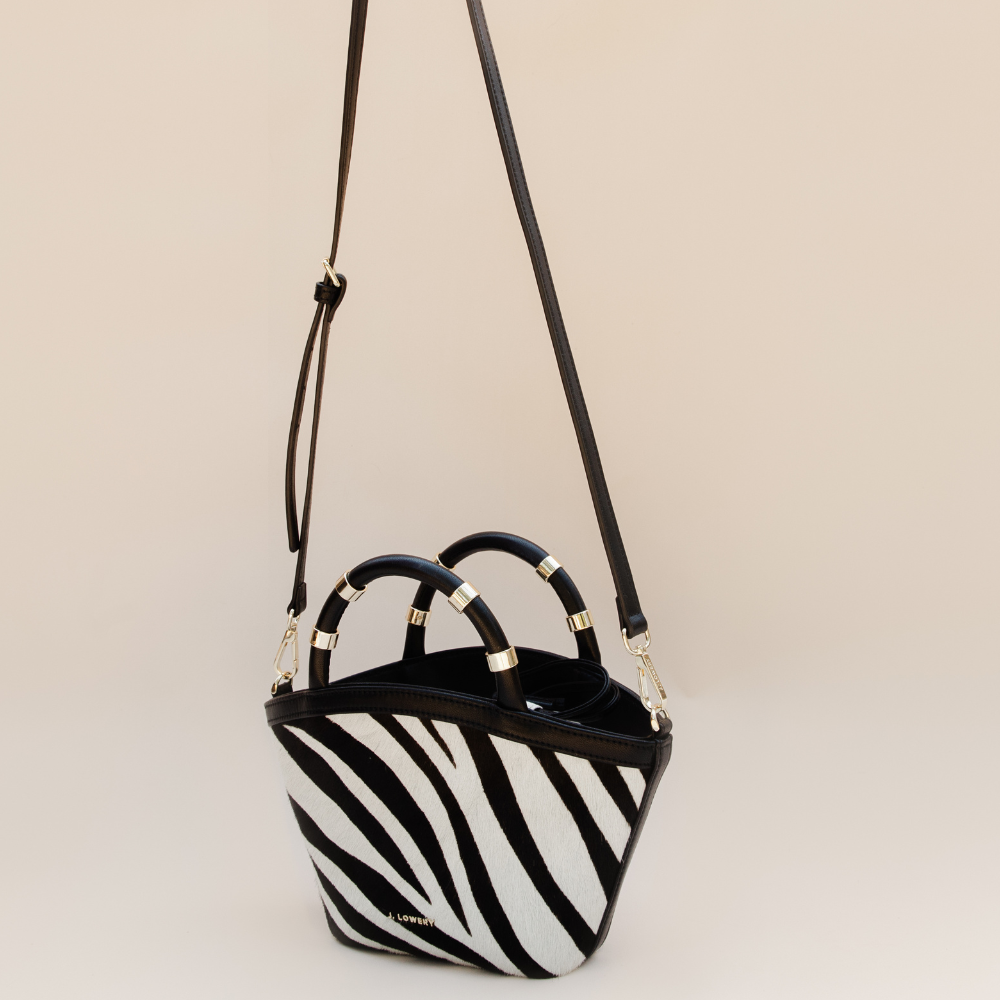 Made from soft zebra print hair-on calf + smooth leather in black and lined with cotton twill fabric