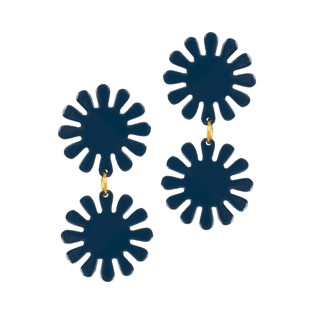 The Navy Maria Double Dangles bring a bold, playful vibe to your look with their striking navy hue and floral-inspired shapes. Lightweight and versatile, these statement earrings are perfect for elevating both casual and formal outfits.