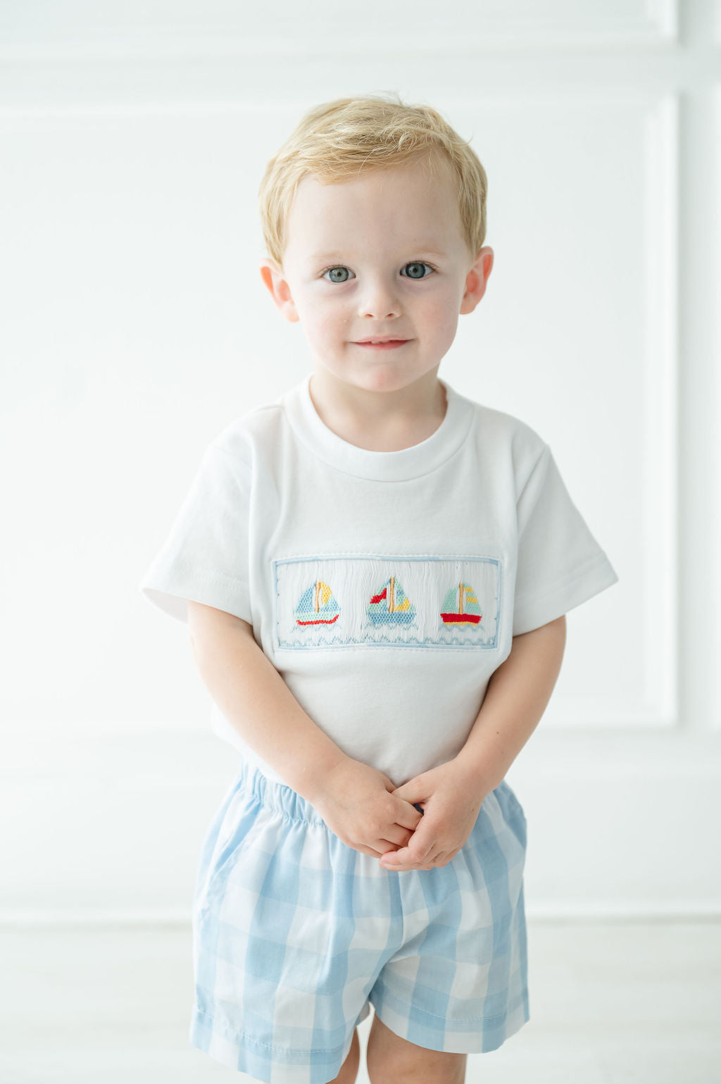 Sailboats Smocked Beau T-Shirt/Shorts Set