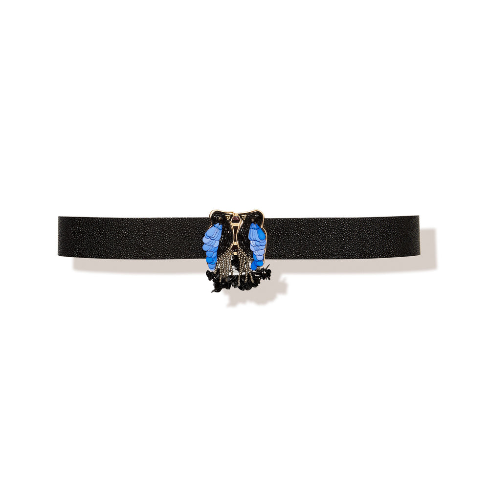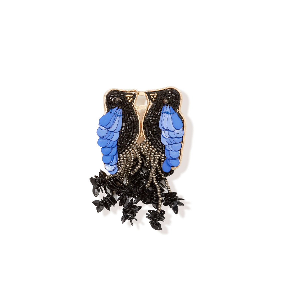 Handmade in India, the birds are crafted of hand cut blue and black sequins, black and gold glass tube beads, metallic beaded chain tails, and cut bead eyes.